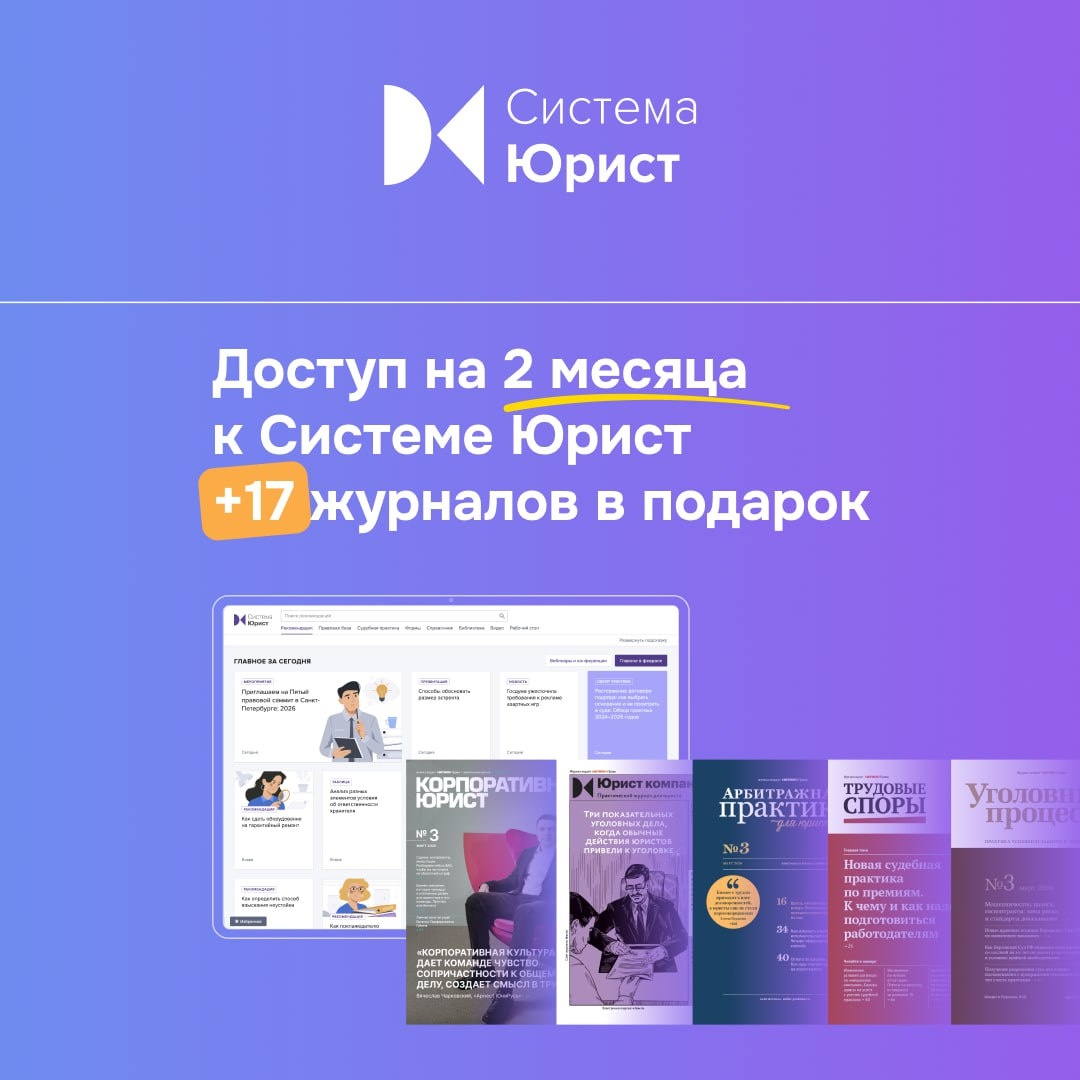 С Системой Юрист вы сможете: ⚪ быстро принимать взвешенные решения с помощью правовых заключений с риск-анализом; ⚪ переложить часть рутинных задач на плечи экспертов Системы Юрист; ⚪ иметь под рукой библиотеку с самыми известными юридическими журналами и уникальными редакционными книгами. Оставьте заявку по ссылке, менеджер перезвонит в течение дня ➡️ 📄 Он отправит вам коммерческое предложение с ценой и подробным описанием разделов, сервисов и услуг, которые вы получите вместе с доступом к Системе Юрист.