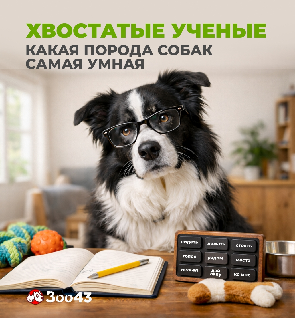 🤓 Что значит «умная собака» Интеллект собаки — это способность получать, запоминать и использовать информацию в разных ситуациях. Например, питомец точно знает, когда его кормят, и мгновенно реагирует на звон миски. Или понимает, что вы показываете направление, и смотрит туда же. А выполнение команд — ещё одно проявление умственных способностей. 🧠 Ученые выделяют несколько типов интеллекта у собак: 1. Инстинктивный — врожденные способности породы: пастушьи, охотничьи или апортировочные навыки. 2. Приобретенный — умение самостоятельно решать задачи и социальные навыки: распознавать эмоции и узнавать людей. 3. Рабочий — способность быстро запоминать команды и выполнять их. Чаще всего «самыми умными» называют собак, которые легко обучаются командам. Но это не абсолютный показатель. Некоторые породы отлично понимают человека, но хуже справляются с самостоятельными задачами. Поэтому рейтинг умных собак всегда условен. 🐕 Топ-5 самых умных пород • Бордер-колли — признанный лидер по обучаем