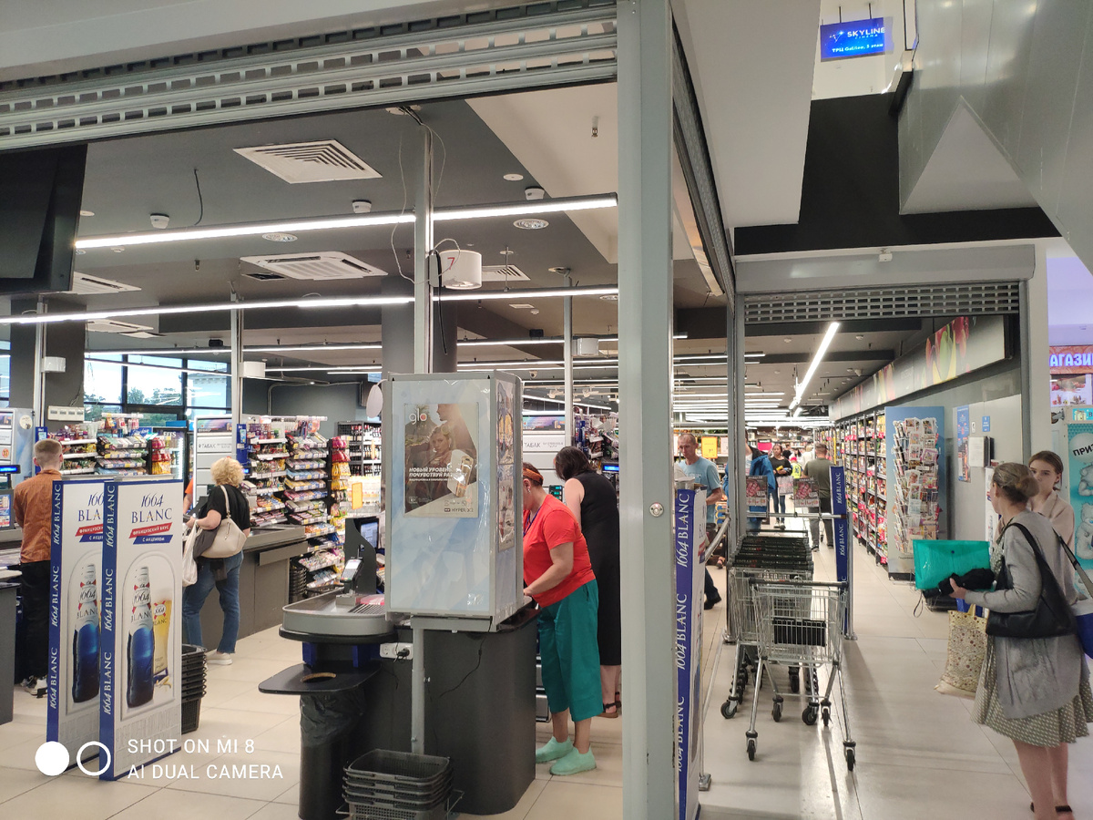А там уже царил настоящий хаос, именно у касс самообслуживания как раз и скопилась огромная толпа, люди возмущались ,все нервно совали банковские карточки к сканерам касс ,а те бездушно молчали и не реагировали- никак ,вообще.