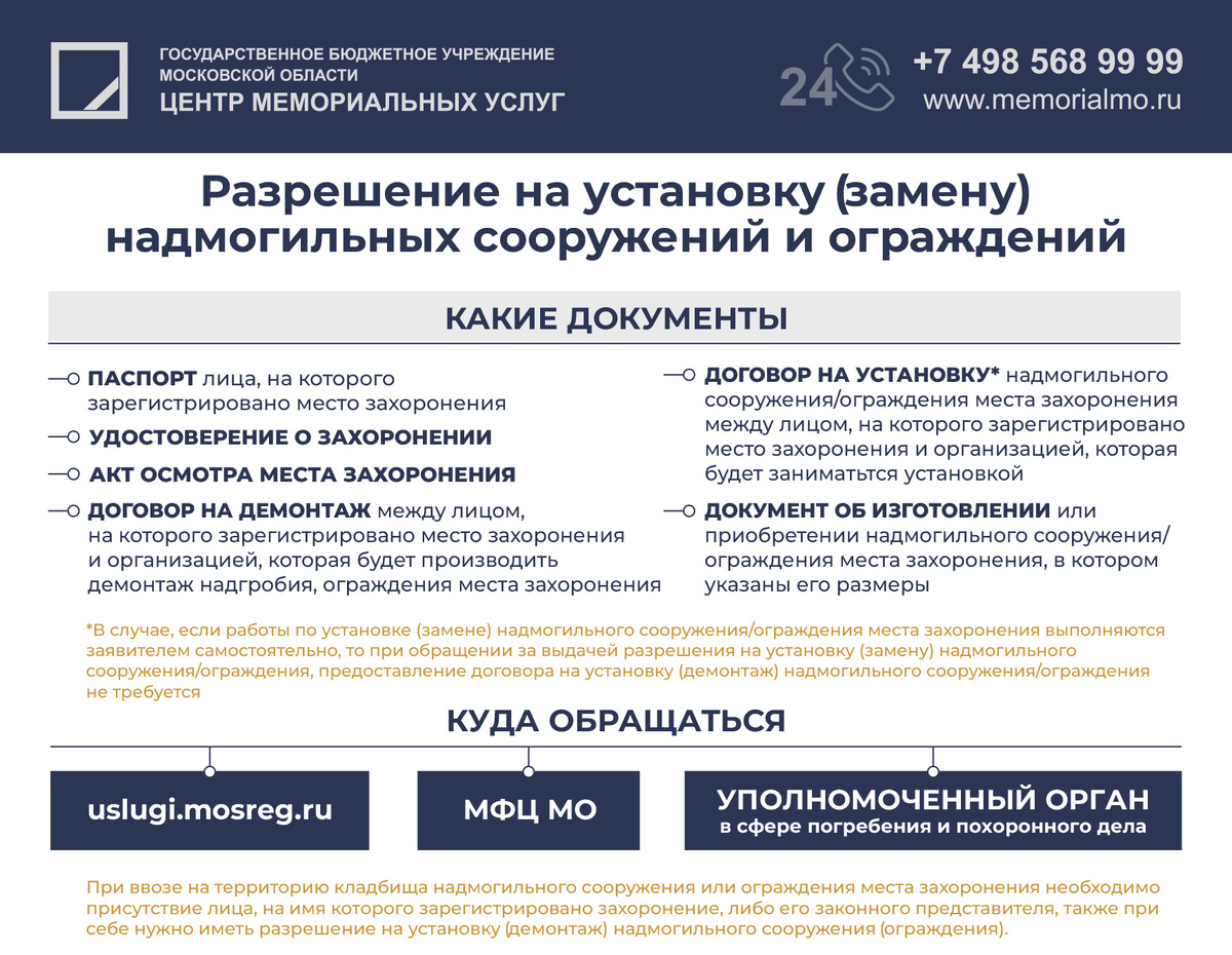 Разрешение на установку/замену надмогильных сооружений и ограждений