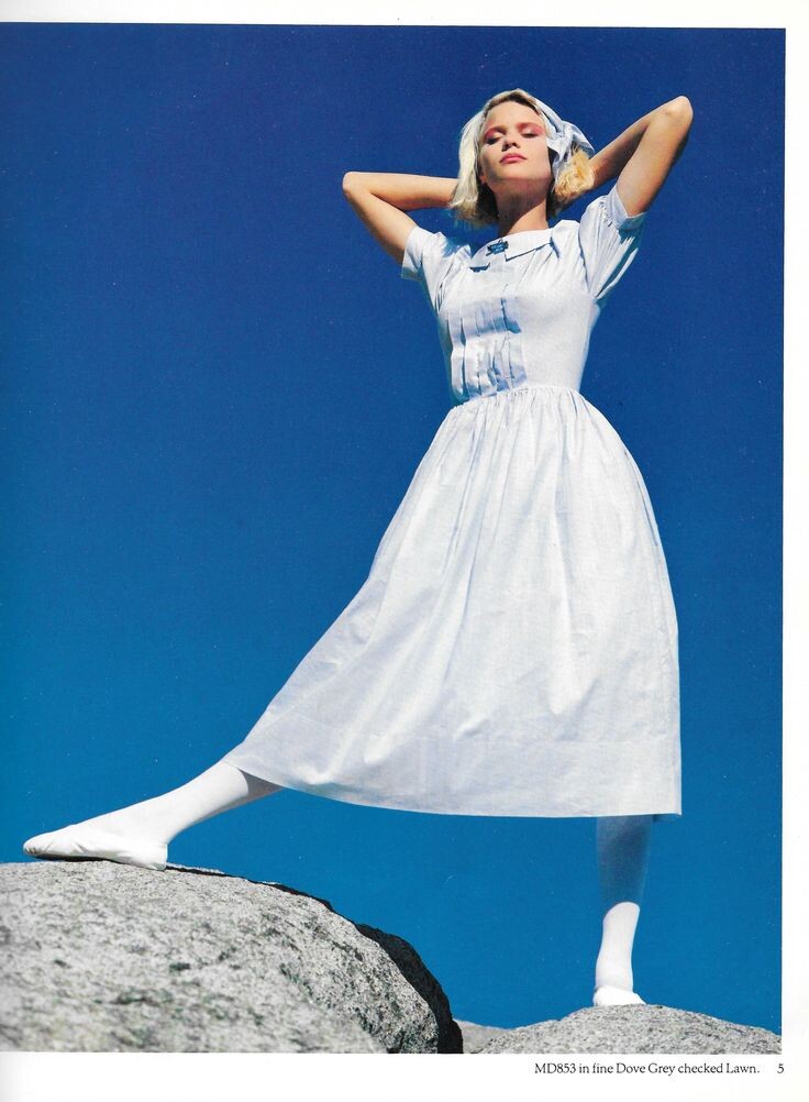 Платье от известного британского бренда "Laura Ashley" ("Лора Эшли") весна-лето 1984 года. В углу внизу написано, что платье из тонкого голубиного серого батиста в клетку.
