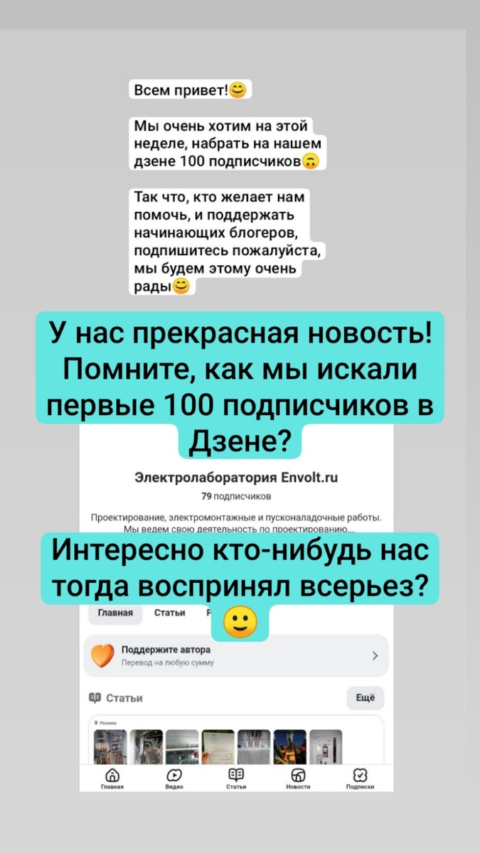 У нас прекрасная новость! Помните, как мы искали первые 100 подписчиков в Дзене? Интересно кто-нибудь нас тогда воспринял всерьез?) А сегодня наши видео набирают по 100 000 просмотров. Спасибо, что вы были с нами, весь этот путь 🔥