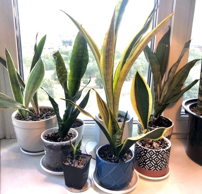 Если расставить горшки с сансевиериями плотнее (но не вплотную, чтобы не мешать друг другу и обеспечивать вентиляцию), они сами создают вокруг себя более влажный микроклимат. Листья испаряют влагу, и в группе влажность всегда выше, чем у одиночного растения.
