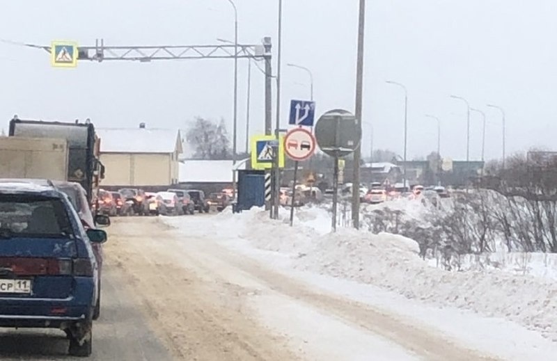 На километровые пробки с семи утра и до вечера жалуются жители Выльгорта