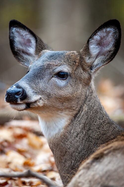 Лежит спокойно. Никуда не спешит. Уши подняты — всё слышит, всё замечает. Знает лес вокруг как свои пять пальц.
