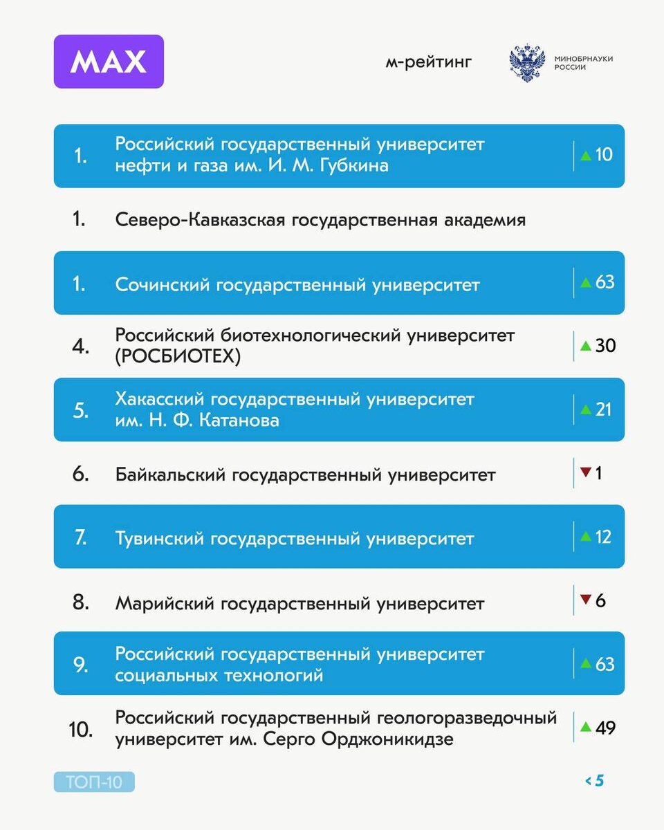 По итогам рейтинга медийной активности вузов России за февраль канал академии в отечественном мессенджере МАХ удерживает свои позиции и по-прежнему занимает первую строчку. Канал в Телеграм на восьмом месте. В целом социальные сети СКГА, в которые входят МАХ, Телеграм, ВКонтакте, RuTube, занимают седьмую строчку среди 240 вузов России. В рейтинге также оценивается активность университетов в СМИ и на официальных сайтах вузов. Отметим, что каналы университетов в мессенджере МАХ впервые вошли в рейтинг Минобрнауки России в январе 2026 года. За самими актуальными новостями академии следите на нашем канале в МАХ.