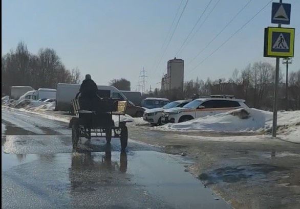 В Пензе на ГПЗ заметили конную повозку, уверенно маневрирующую между ямами
