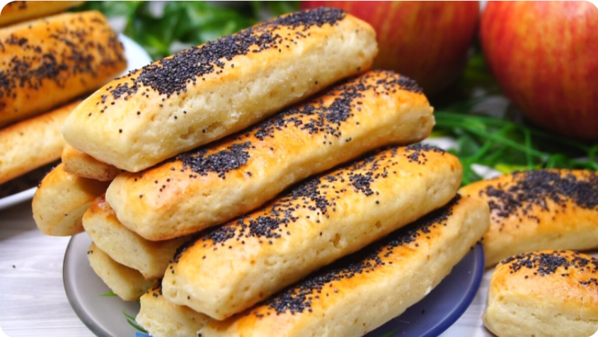 - Разнообразие вкусов. Мак — это классика, но его можно заменить и другими добавками. Попробуйте посыпать палочки кунжутом (для любителей пикантного вкуса), сахарной пудрой (для сладкоежек) или даже мелко рублеными орехами.