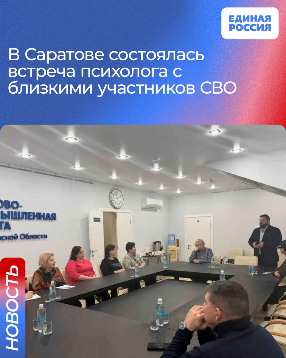 В Торгово-промышленной палате Саратовской области состоялась очередная встреча психолога-волонтёра Межрегионального центра помощи детям и взрослым Анны Абрамовой с матерями и жёнами участников СВО, организованная активистами Единой России при участии областного фонда «Защитники Отечества».