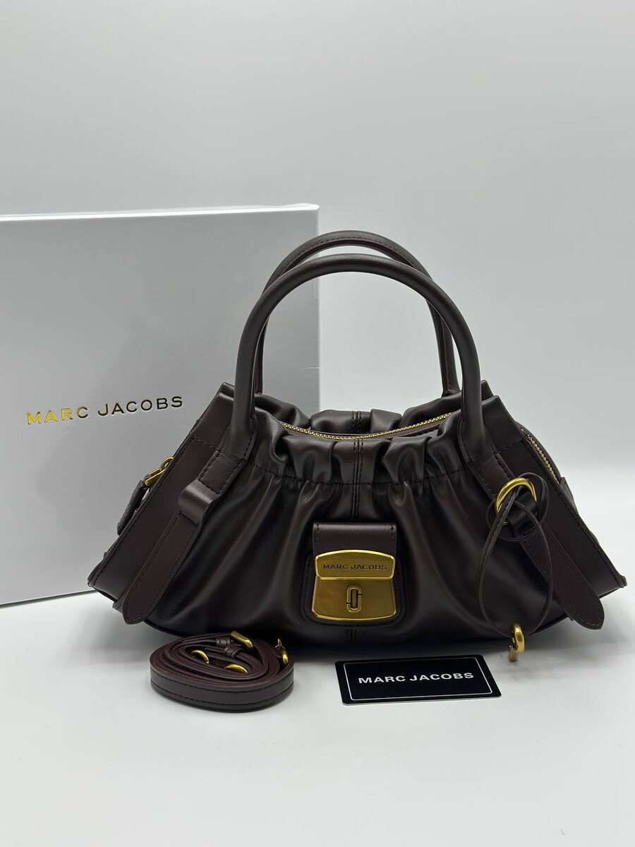 Это уменьшенная версия саквояжа из кожи с фурнитурой под старину и присборенной верхней частью. Сумка имеет застежку-молнию сверху, верхние ручки для переноски и съемный регулируемый ремешок через плечо. Размер 29/14 Сумка была представлена на показе коллекции Marc Jacobs осень-зима 2025 года. Комплектация коробка и пыльник -цена 6000₽