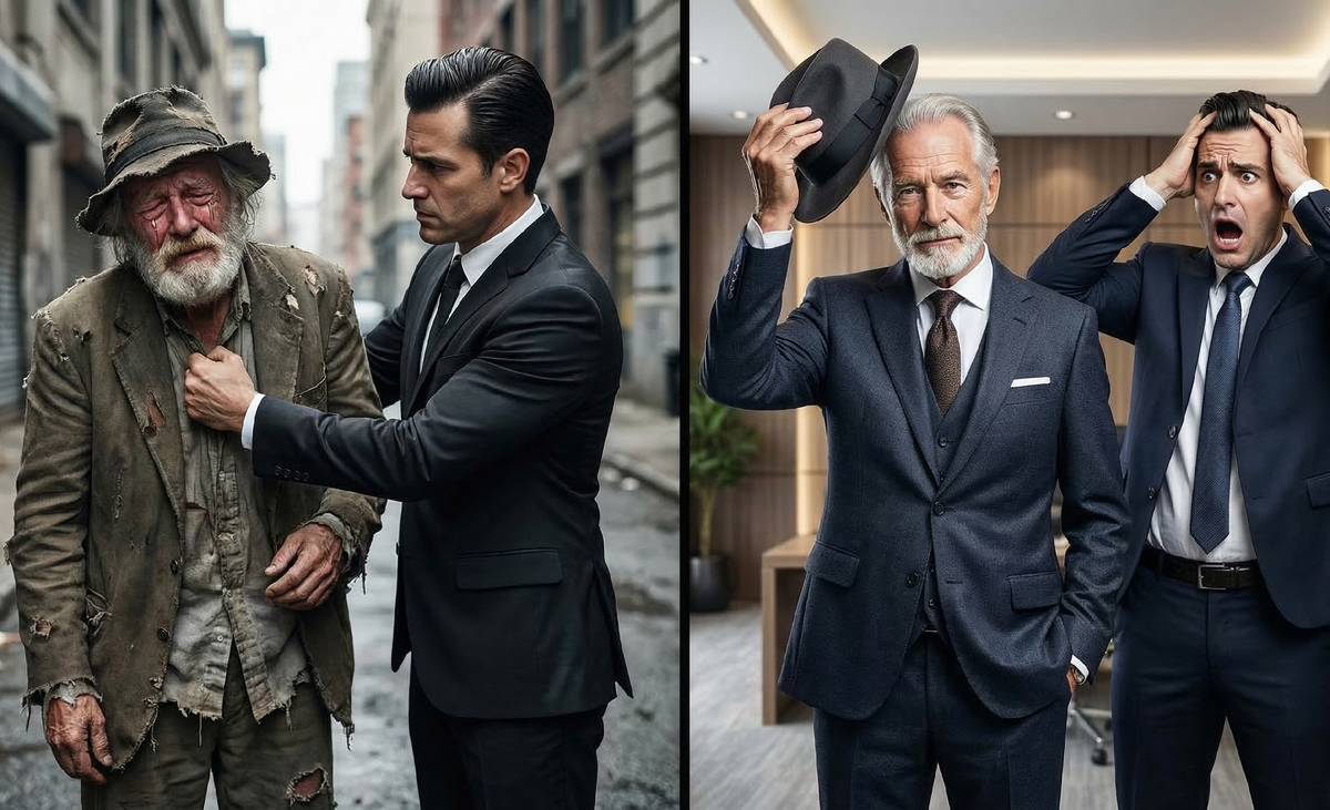Ровно в десять часов утра тяжелые двери ресторана распахнулись. Вошли двое крепких охранников в деловых костюмах, а следом за ними — Дмитрий Андреевич. Он был в безупречном темно-синем костюме, в белоснежной рубашке, гладко выбритый, уверенный в себе. От вчерашнего бродяги не осталось и следа. Только глаза... глаза были те же — внимательные, глубокие, с небольшой грустинкой.