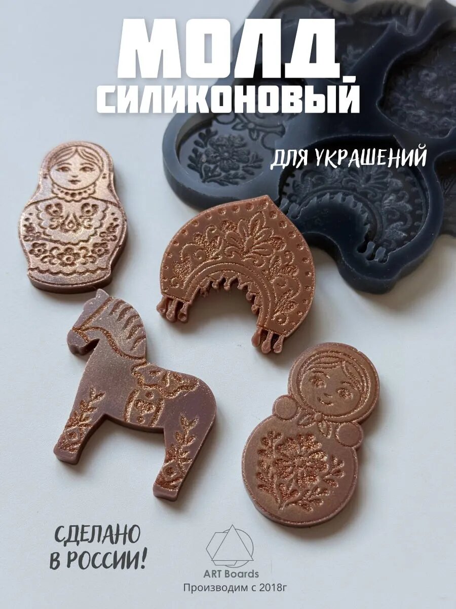 МОЛД СИЛИКОНОВЫЙ «РУССКИЙ СТИЛЬ» — КОНЬ, МАТРЁШКА, НЕВАЛЯШКА, КОКОШНИК