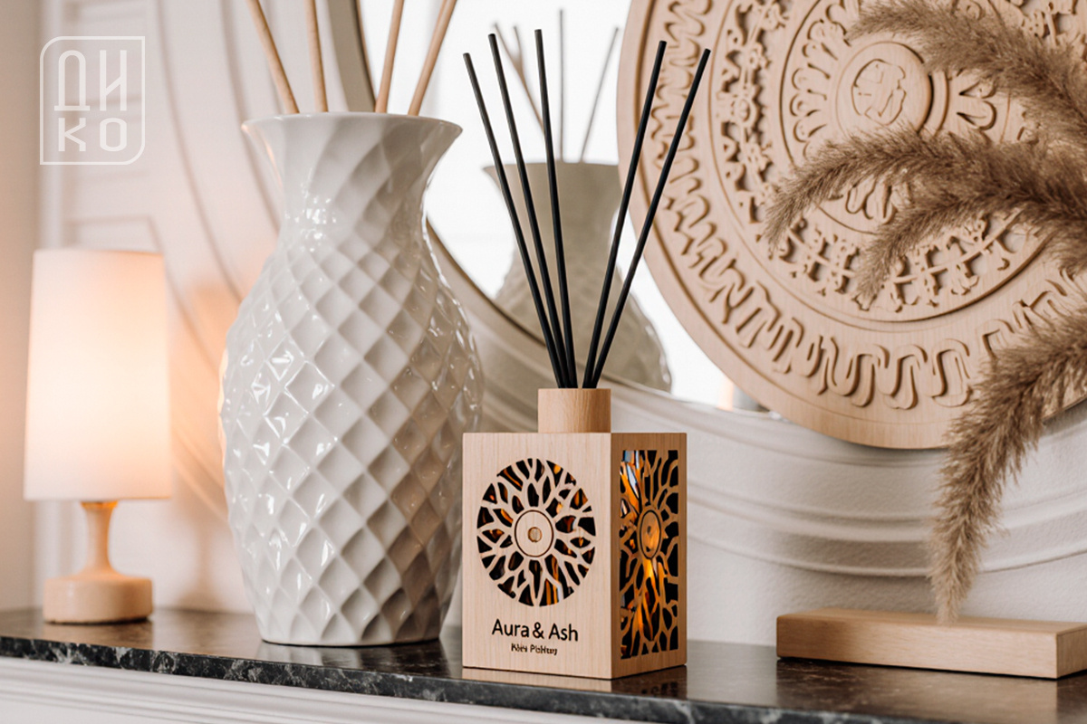 И здесь важен не только сам запах, но и то, как он подаётся. Пластиковые флаконы сомнительного вида могут испортить всё впечатление. А деревянный диффузор ручной работы с благородной текстурой дерева сам становится элементом витрины. Нанесите на корпус логотип бренда — и получите стильный аксессуар, который будет работать на имидж 24/7.