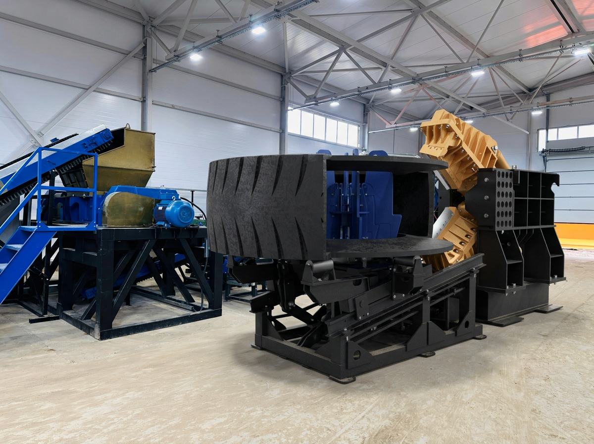 Утилизация крупногабаритных шин КГШ (от R46 до R57) — одна из самых сложных задач в сфере переработки. Вес такой покрышки может достигать нескольких центнеров, а прочность корда и толщина резины делают невозможным использование обычного инструмента.