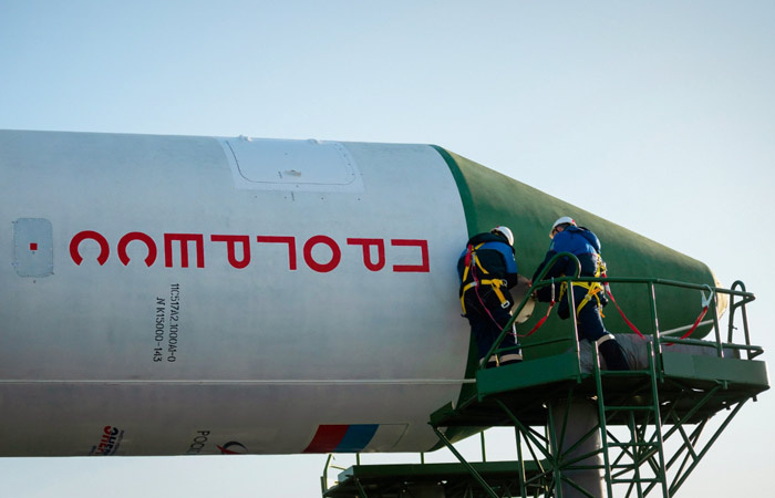 Ракета "Союз" с грузовым кораблем "Прогресс МС-33" вывезена на старт Байконура