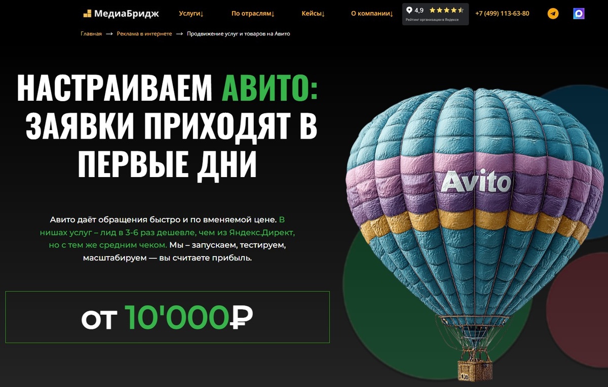 Медиа-Бридж выглядит как «системное» агентство: есть юрлицо, понятная линейка тарифов, регулярная отчётность и процессы (оптимизация, замена объявлений, работа с поддержкой). Сильная сторона — не только запуск Авито, а увязка с экономикой (ROMI/LTV) и интеграциями (CRM/аналитика), что редко встречается у одиночных «авитологов». Агентство готово не просто поставлять "абы какие" заявки, а глубоко погружается в бизнес-процесс – смотрит, в первую очередь, на окупаемость и прибыль рекламы. Это важно тем клиентам, кто хочет много и долго зарабатывать и получать честное и качественное обслуживание.