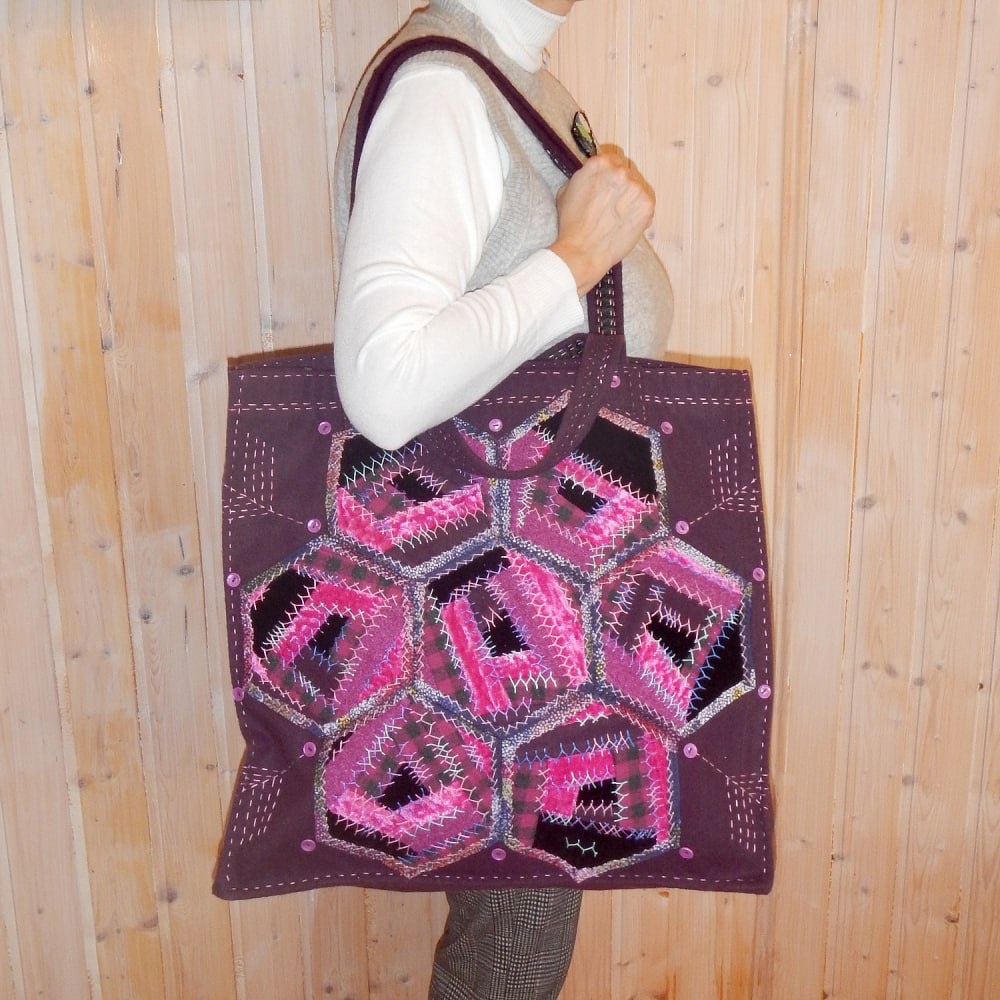 Большая Сумка тоут бэг из Лоскутов Ткани Крейзи Пэчворк шестиугольники