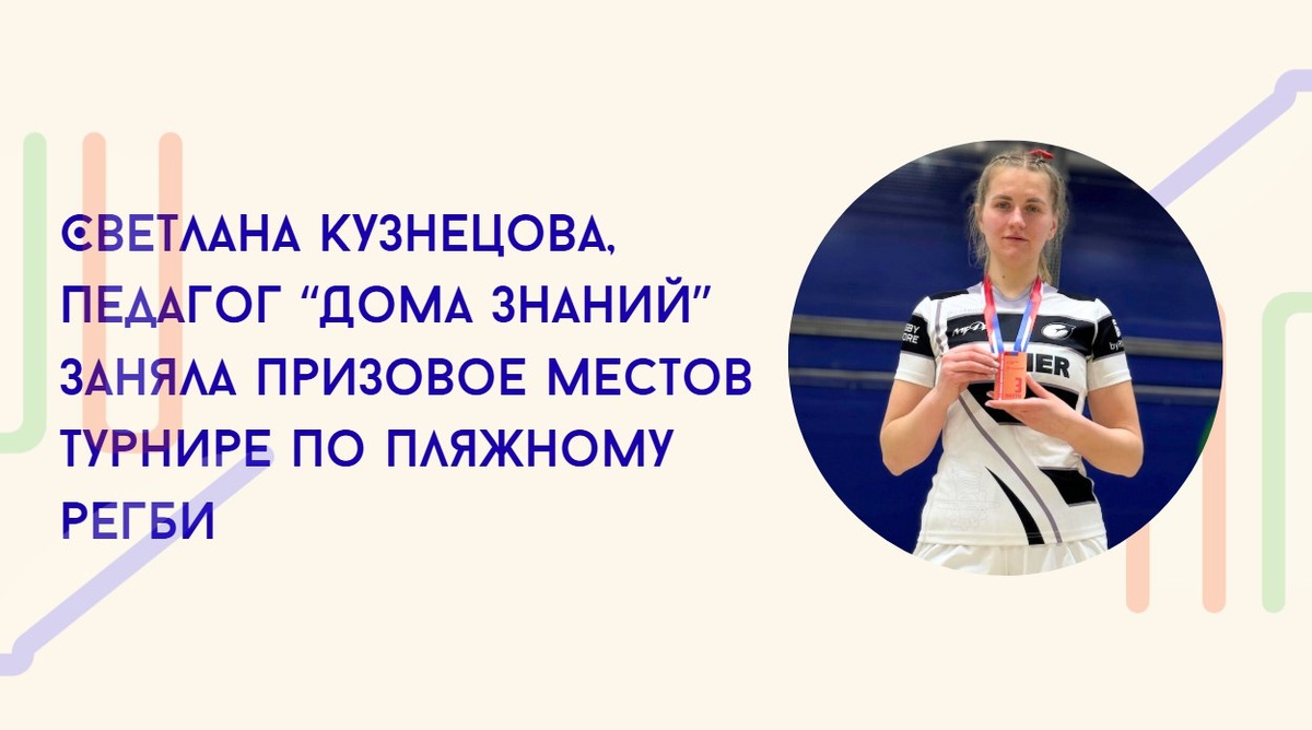 Спорт и школа — это не взаимоисключающие вещи. Как для учеников, так и для учителей. В "Доме Знаний" можно быть отличным педагогом по физкультуре и одновременно развиваться в пляжном регби на уровне чемпионата Москвы. Светлана Кузнецова — педагог «Дома Знаний», вместе со своей командой «Торпедо-Москва» взяла бронзу в Чемпионате Москвы по пляжному регби! Место действия — легендарный центр пляжных видов спорта «Лето-Тропарёво». Песок, азарт и семь сильных команд, которые вышли бороться за медали. Это вам не дворовый турнирчик — уровень очень высокий, борьба в каждом матче жёсткая, скорость сумасшедшая. Светлана как педагог знает: настоящий характер проявляется не только на уроках физкультуры, но и когда ты падаешь лицом в песок, встаёшь и идёшь дальше. Её пример — это мощная мотивация для ребят из «Дома Знаний». Представьте: учитель, который учит вас прыгать через козла и бегать кроссы, сама только что вернулась с медалью чемпионата Москвы по такому динамичному и красивому виду спорта!
