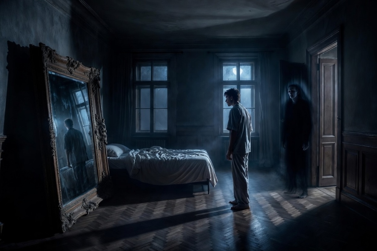 В квартире их было всего два: одно в ванной, второе — старое, большое, в спальне, в деревянной раме, потемневшей от времени.