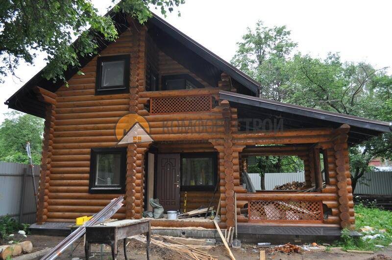 " Размер: 7,8 х 8,25 м Площадь: 80 м2 Из оцилиндрованного бревна диаметром 220 мм. Место строительства: п.Клязьма, Мытищинский район, Московской области Проект разрабатывался как гостевой дом с баней, для летнего проживания с учетом всех пожеланий заказчика. Такой дом-баня идеально подойдёт как дачный или гостевой для размещения небольшой семьи из трёх человек. При желании в комнате отдыха можно разместить дополнительные спальные места. Просторный балкон и терраса позволят насладиться красотой природы. Опять возникнут вопросы от наших подписчиков, что где же сан.узел. А туалет находится в помывочной. Делаются каркасные перегородки. Не переживайте. Цена за домокомплект под временную кровлю 1 300 000 руб. В стоимость домокомплекта уже включено: Эскизный проект Производство деревянного дома согласно проектной документации Материал для строительных лесов Подкладочная доска пиломатериал сечением 50*200 мм Перекрытия (балки первого и второго этажей) брус сечением 100*20