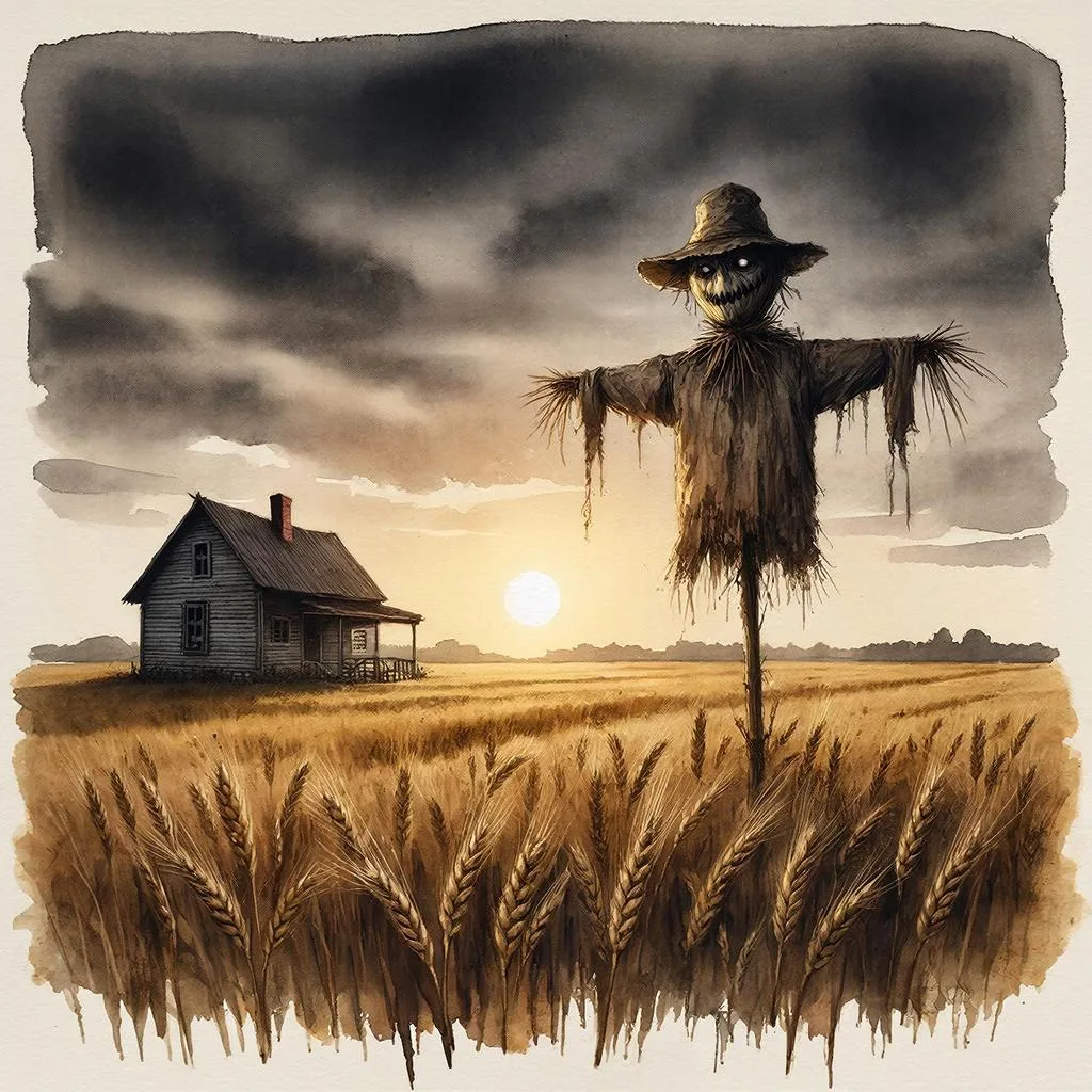 Они двинулись дальше, мимо фермы к дому. Он стоял на отшибе, в стороне от основной дороги, рядом с широким полем с высокими колосьями, которые шевелились даже без ветра. Когда они подошли, солнце уже клонилось к закату, бросая длинные тени на землю. На поле, прямо напротив дома, стояло пугало. Обычное на вид - старая одежда, набитая соломой, потрёпанная шляпа. Но что‑то в нём было не так: взгляд, будто направленный прямо на них, или неестественная симметрия фигуры. Анна невольно поежилась.