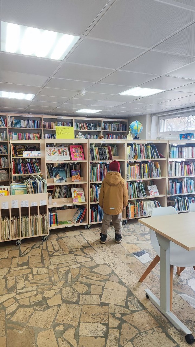 Сегодня у нас поход в библиотеку. Подбираем со Славой книги с плаката "100 книг".