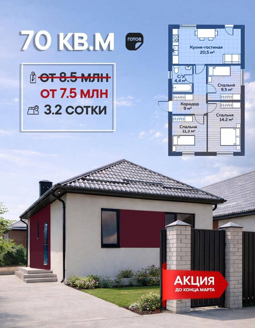 Дом в КП «Левый берег» — уже готов к жизни 🏡 70 м² 🌿 Участок 3.2 сотки ✨ Предчистовая отделка Сейчас цена — 7 500 000 ₽ (вместо 8.5 млн) ⏳ Акция действует только до конца марта — дальше цена вернется обратно Это тот случай, когда можно зайти в дом сразу и сэкономить миллион🫰 📍Поселок уже заселен — никакой стройки вокруг 📍Все коммуникации подключены 📞 8 928 880 06 77