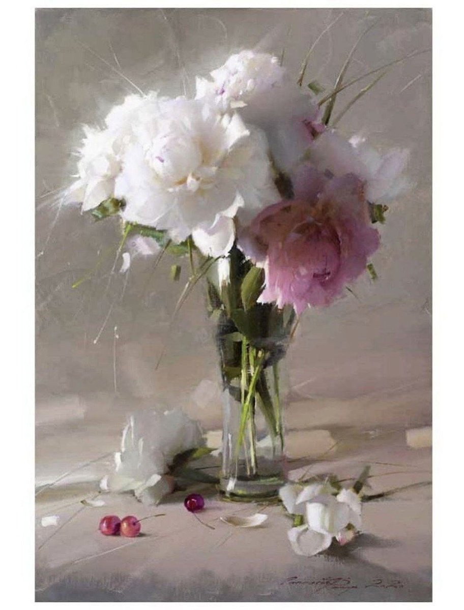Цветочные натюрморты, нежные воздушные, реалистичные с элементами абстракции кисти Рамиля Гаппасова (1965), - именно они принесли художнику
