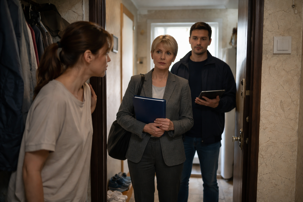 – Поступил сигнал. Нам нужно осмотреть жилищные условия ребёнка. Вы Елена Сергеевна Воронова?