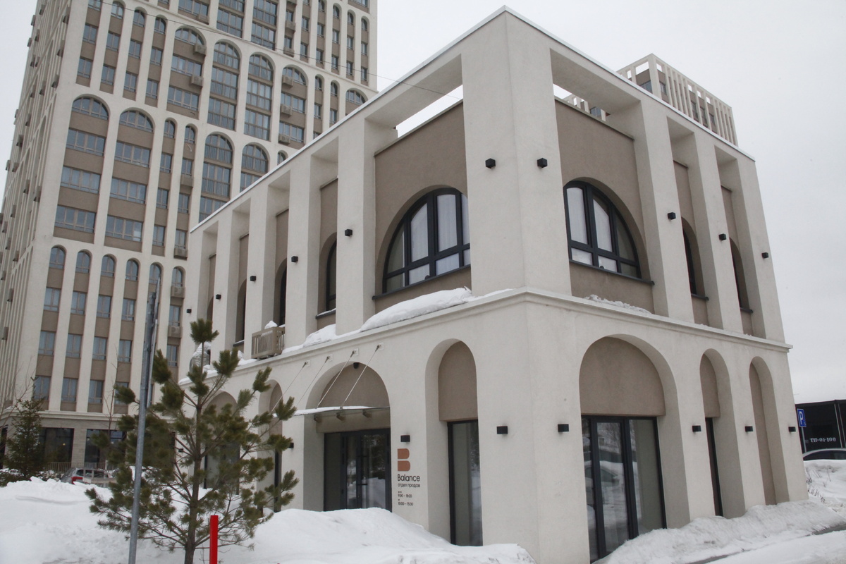 В жилом квартале «Баланс» на Ленинградской фасады высоток практически заполнены арочными решениями. Из шести 20-этажек, обозначенных в генплане комплекса, сейчас готовы три. Две из них заселены, ключи от квартир в третьей начнут выдавать уже этой весной. Две жилые высотки находятся на едином стилобате с аркадой, под которым есть подземный уровень с парковкой. Весь комплекс рассчитан на 1200 квартир.