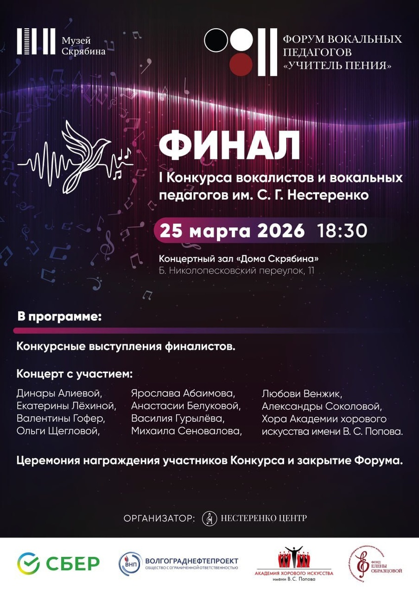 С 22 по 25 марта 2026 года в столице пройдет Форум вокальных педагогов «Учитель пения». Масштабное событие объединит профессионалов вокального искусства и станет площадкой для обсуждения ключевых проблем отрасли, а также подарит уникальный шанс молодым исполнителям побороться за весомый приз. https://www.classicalmusicnews.ru/anons/forum-uchitel-peniya-soberet-v-moskve-vedushhih-vokalnyh-pedagogov-i-opredelit-obladatelya-gran-pri-konkursa-imeni-svetlany-nesterenko/?utm_source=cmn_own&utm_medium=telegram 🎼 ClassicalMusicNews.Ru | Telegram | ВК | МАКС