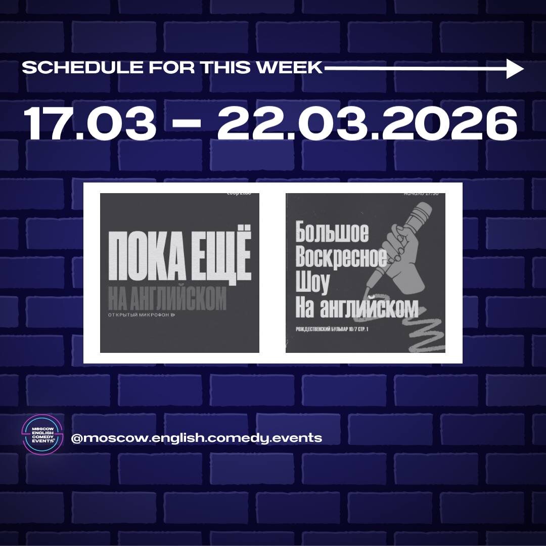 )❗️ -----‐----------------------- 🕤Saturday, March 21st, 9:30 PM – Пока Ещё На Английском 🎤Open Mic 💵Entrance: 300 rub with promo code ⚠️ stillstudent ⚠️ 🔗 Buy tickets here 📍Still StandUp Moscow 🗺 Pokrovka 17c5, through the arch with the pink lights 🏙 Blue building directly inside the courtyard -----‐---------------------— 🕚Saturday, March 21st, 11:00 PM - International Afterparty! 🎨Meet expats, artists, and creatives at an underground bar 📍Жажда 🗺 Map: Bolshoy Tryokhsvyatitelsky Lane, 2/1с8 -----‐---------------------— 🕠Sunday, March 22nd, 5:30 PM - Большое Воскресное Шоу На английском 📺Special appearances by famous Russian comics 🎟️Entrance: FREE 💸 Donations welcome, one drink minimum 🔗Reserve for free 📍Stand Up Club на Трубной 🗺 Map: Rozhdestvensky Blvd, 10/7 С1