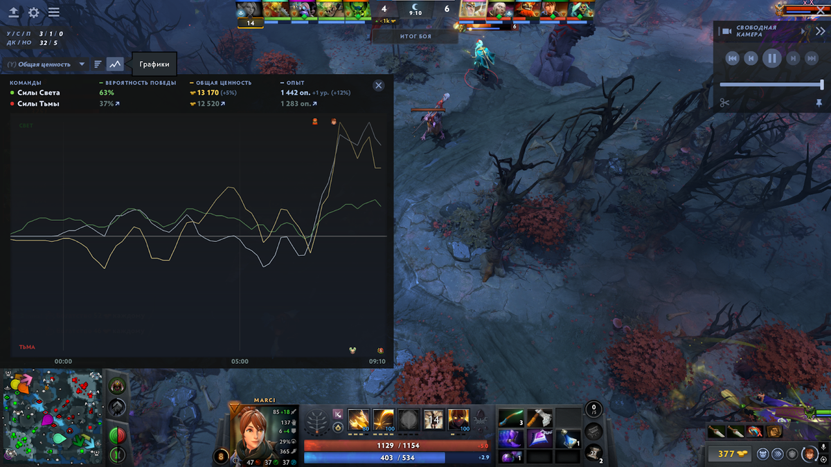 В интерфейсе Dota 2 имеется множество инструментов для анализа матчей. Одним из самых полезных, но при этом не самым очевидным для новичков, является график вероятности победы в Dota. Он помогает понять, в какой момент команда получила преимущество, и как менялись шансы на успех по ходу игры. В этой статье будет рассказано, где найти график во время и после игр.