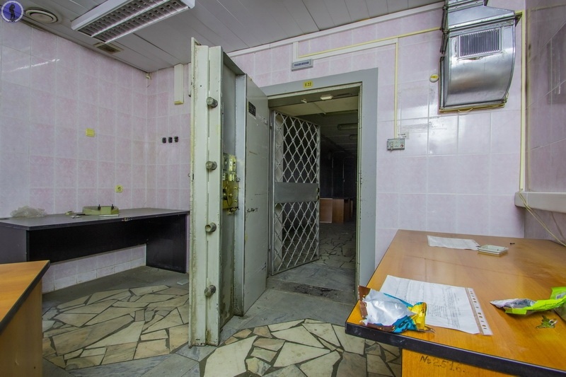 Сегодня мы покажем как выглядит заброшенный, но хорошо сохранившийся банк, имевший собственное банковское хранилище для денег. Что это был за банк мы конечно писать не будем, чтобы он сохранился в таком виде подольше и не был разбомблен и изрисован граффити вандалами, что обычно быстро происходит с подобными объектами. Описывать тут тоже особе нечего, просторный холл с рядом из полутора десятков окон для обслуживания клиентов расчётно-кассового центра. Офисные помещения. В которых конечно же стояли сейфы. Рабочие столы. Множество телефонов. Калькуляторов, счётных машинок и кассовых аппаратов. Засохший цветок и снег у окна. И снова офисные помещения с сейфами. В этом зале когда-то стояли ряды столов для работы с клиентами. Но ведь это банк и конечно же нас интересует не это. А помещения банковского хранилища, входы в которые были защищены толстыми сейфовыми дверями с множеством ригелей. на этой двери их было 10, а механизм открытия разблокировался при помощи двух ключей. Конечно же эти