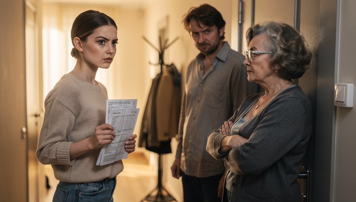 Она обошла свекровь и открыла входную дверь. Но не вышла. Вместо этого она повернулась и посмотрела на обоих — на мужа и его мать — долгим, тяжёлым взглядом.