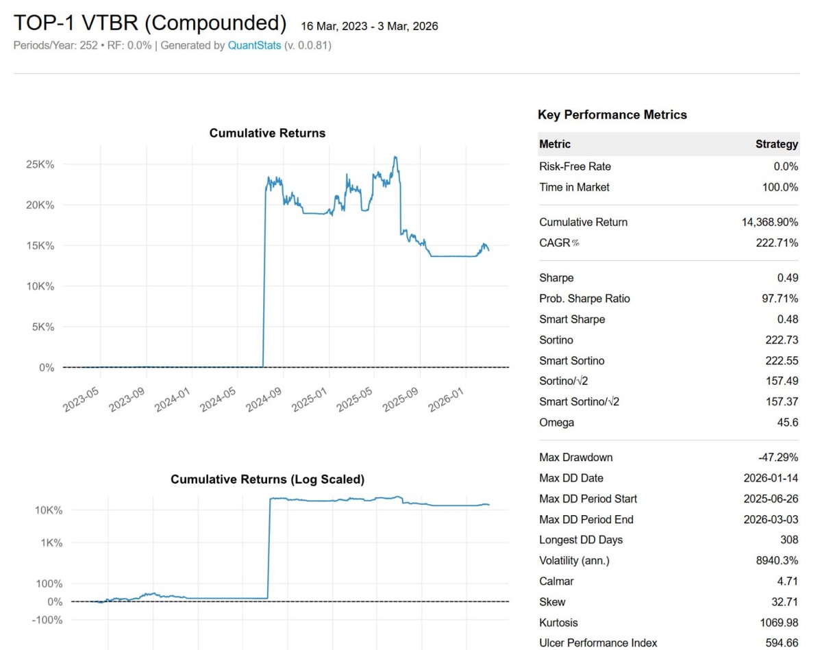 ? Михаил Шардин пишет, что его не особо интересуют чужие результаты — ему важнее разбираться в механике рынка как системы. Особенно в идеях, которые выглядят необычно или даже парадоксально. В какой-то момент обсуждение свелось к простой мысли: что если не анализировать графики, не строить индикаторы и не искать сигналы, а просто реагировать на движение цены? Такая стратегия делает только две вещи: держит очень маленькую позицию и увеличивает её только тогда, когда рынок уже движется в прибыль. По сути — попытка эксплуатировать редкие сильные движения. Михаил решил проверить эту гипотезу на истории. В полной версии — подробный разбор механики стратегии, конкретные параметры входа и выхода, логика масштабирования позиции, код теста и реальные результаты на акциях, включая нюансы с данными и ограничения модели: https://smart-lab.ru/mobile/topic/1278719 😍 СМАРТЛАБ | 📲 Наш MAX