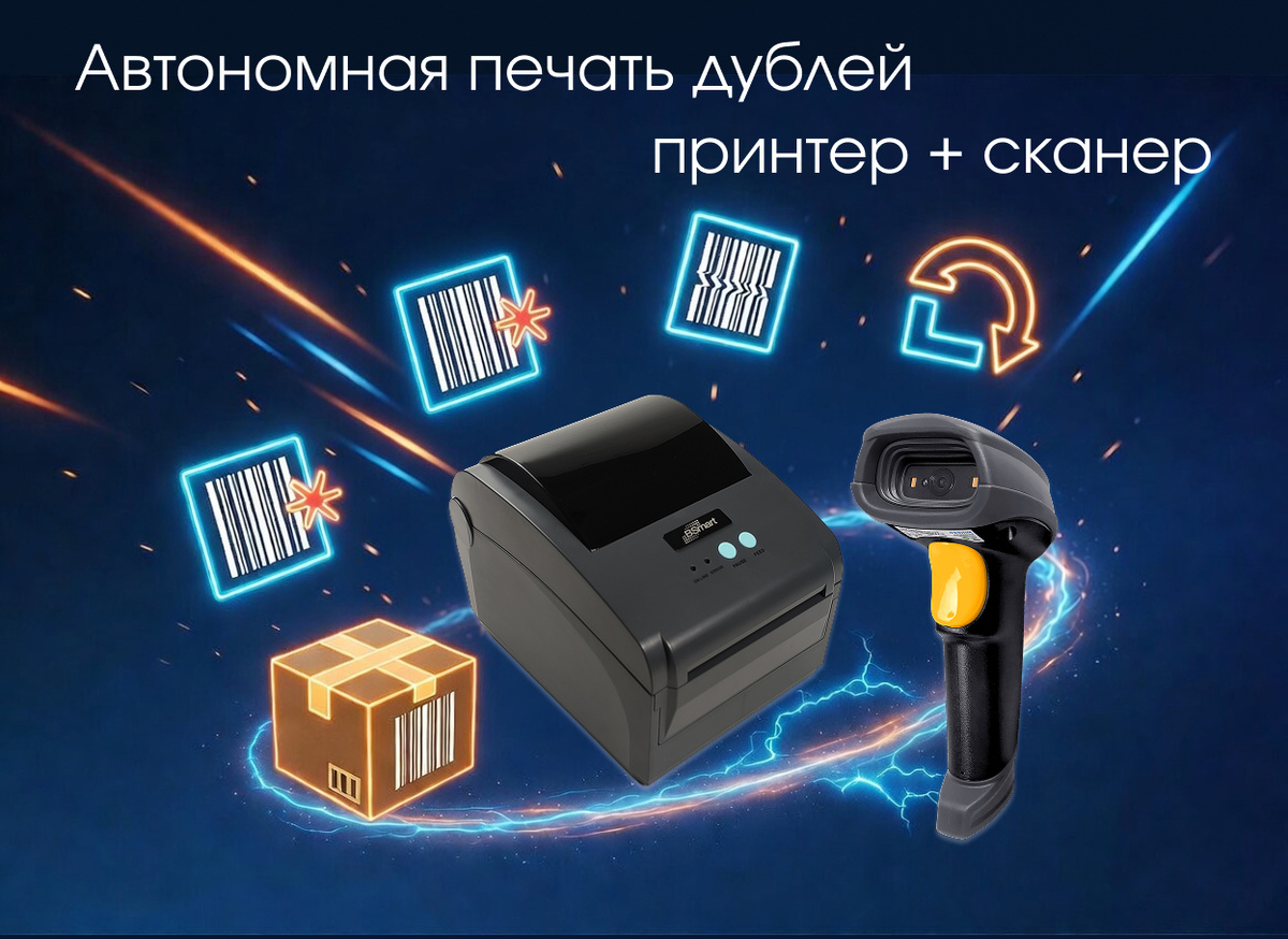 Комплекс «принтер + сканер» — это универсальный инструмент для быстрой печати дублей штрихкода в трёх самых болезненных кейсах: ✔ Нанесение дубля на внешнюю упаковку (актуально для маркетплейсов); ✔ Перемаркировка повреждённого или нечитаемого кода; ✔ Возврат от покупателя без штрихкода.