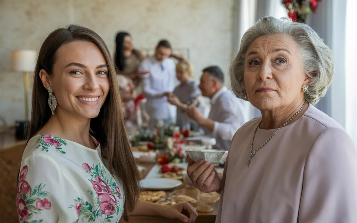 Её ноги несли её мимо столов, мимо улыбающихся тётушек и любопытных взглядов двоюродных сестёр. Она шла прямо к четвёртому столу, где Валерия Сергеевна сидела с видом коронованной особы, критически изучая сервировку.