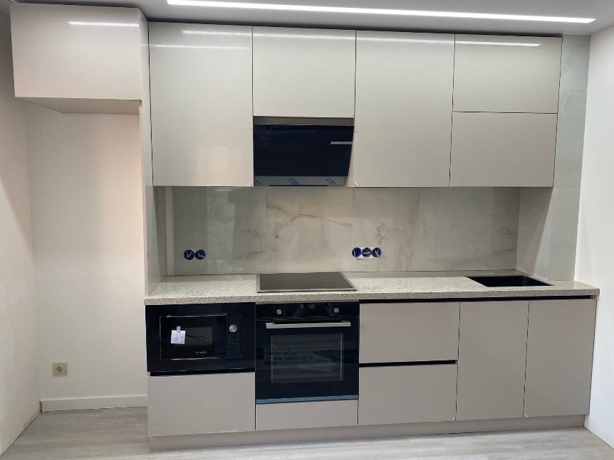 💁🏼♀️ «Мы хотели спокойную кухню без лишнего декора» - Почему такой цвет — не белый и не серый? Хозяева хотели тёплый спокойный оттенок, который не надоест и подойдёт к разным стенам и полу. Мягкий бежевый — золотая середина: не маркий, не холодный, не кричащий. - Не скучно ли без ручек и фрезеровки? Ровные фасады делают кухню фоном. Внимание на столешнице и встроенной технике. «Хотели, чтобы кухня была фоном, а не главной звездой интерьера». - Где всё хранить, если кухня прямая? Верхний ряд до потолка + выдвижные модули внизу + встроенный блок с духовкой и микроволновкой — полноценный запас по хранению. - Зачем такая длинная столешница? Чтобы не делить рабочую поверхность на куски: можно одновременно готовить, раскладывать посуду и ставить технику. Если вам близка идея спокойной «фоновой» кухни без лишнего декора — ставьте «+» или напишите, какие оттенки рассматриваете (белый, бежевый, серый, тёмные). Подскажем, как выбрать цвет, который не надоест.