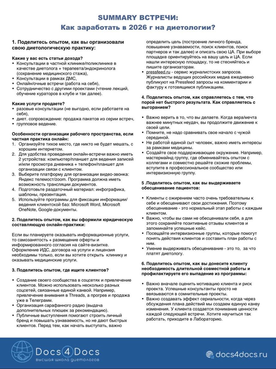 Ловите summary мастермайнда ⬆️ Резюме предыдущей встречи здесь. Отзывы со встречи: Юлия: Марина Александровна, спасибо большое за мастермайнд Беру задание на весну: работать со своим самозванцем и активнее предлагать и продавать сопровождения. Записала себе вашу фразу «я про деньги» сделаю карточку, чтобы не забывать. Линда: Марина Александровна, спасибо большое за встречу! Как и всегда очень ценно!!! ❤️Для меня оказалось очень актуально и вовремя. Мое обучение маркетингу в сочетании с практическими советами диетологов помогут мне выстроить личный бренд. Цели на весну проработать свои услуги и наполнить блог. Для себя с мастермайнда беру продолжать работать со своим обесцениванием и продумать длительность программы сопровождения и объяснить себе, почему. Ариадна: Марина Александровна, коллеги, спасибо большое за мастермайнд!❤️ Ценный опыт каждого, слушала внимательно и конспектировала. Забрала в копилку идею про смелость самим выходить на организаторов мероприятий, не откладывать н