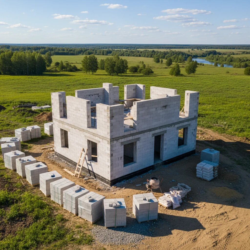 - Возведение стен: Стены из газобетона представляют собой основную конструкцию дома, которая напрямую влияет на общую стоимость. Этот этап включает покупку материалов, армирование и укладку блоков.