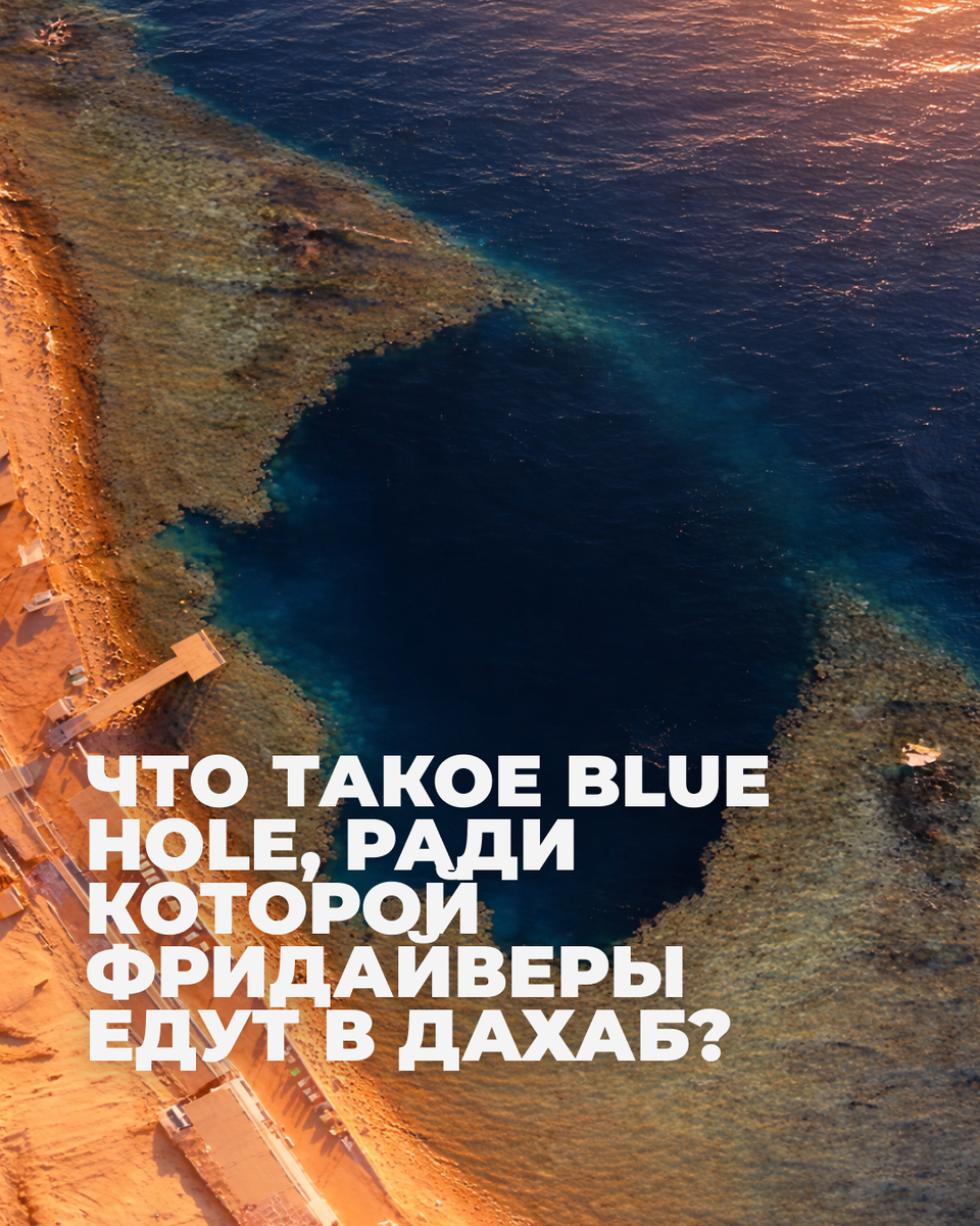 Это подводная вертикальная пещера или карстовая воронка, уходящая вглубь моря. Её главная особенность поразительно прозрачная и глубокая голубая вода. На самом деле, “голубых дыр” в мире несколько, но их точного числа не знает никто, так как многие из них находятся в труднодоступных местах или еще не исследованы. Самая знаменитая Blue Hole находится возле египетского Дахаба в Красном море. Выглядит она впечатляюще: почти идеальный круг диаметром около 50 метров. Глубина у входа — всего 6–10 метров, а дальше шахта уходит вертикально вниз на 100–130 метров и соединяется с морем через арку на глубине 52–55 метров. Почему Blue Hole популярна у фридайверов?