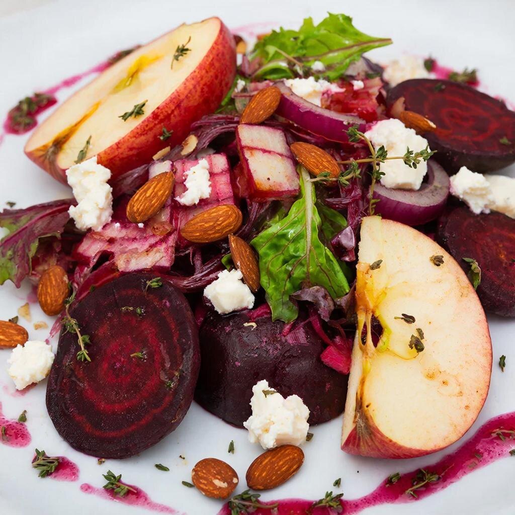 Этот салат – настоящее гастрономическое открытие, где каждый ингредиент играет свою неповторимую роль, создавая гармоничное и запоминающееся сочетание вкусов и текстур. Сладкая, землистая свекла, нежное карамелизованное яблоко, пикантный козий сыр и легкая горчичная заправка – все это объединяется в блюдо, которое идеально подойдет как для праздничного стола, так и для утонченного ужина. Время приготовления: 1 час 25 минут