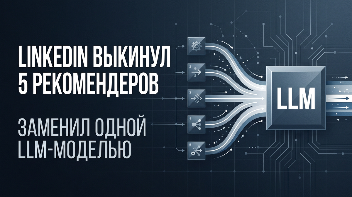 LinkedIn (да, тот самый) решил: хватит зоопарка. За год они разобрали эту конструкцию и заменили пять «добывающих» пайплайнов одним — на базе большой языковой модели (LLM). И утверждают, что теперь лента лучше понимает профессиональный контекст и при этом дешевле в обслуживании.