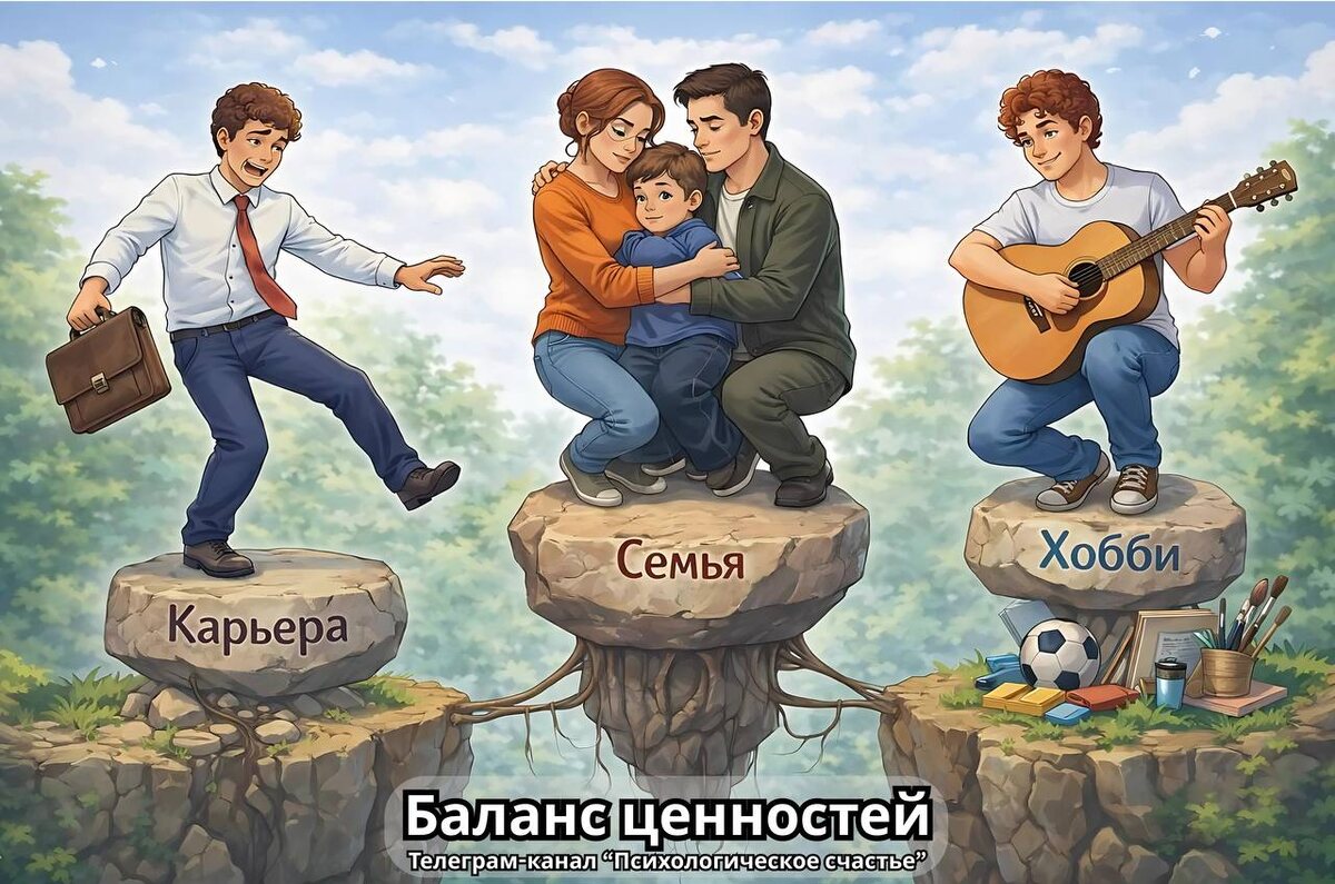 На своём канале я много писал про ценности и о том, что это — важнейший ориентир в нашей жизни. Писал об этом настолько часто, что тема немного приелась. Но я ни разу не говорил о балансе ценностей, хотя это тоже не менее важная тема. Часто бывает, что мы вкладываемся только в одну или несколько ценностей. И если в одной из них — или сразу в двух — происходит кризис, нам кажется, что не на что опереться, и мы теряем важную опору в жизни. И жизнь устроена так, что кризисы случаются рано или поздно, и обычно не так, как мы ожидаем. Поэтому они и бьют так сильно, сбивая нас с ног. Именно поэтому так важно сохранять баланс ценностей — вкладываться не только в отношения или карьеру, но и во что-то ещё, что вам хотелось бы развивать в перспективе. Это может быть хобби, отношения с друзьями, забота о себе и многое другое. Если происходит серьёзный кризис в одной из сфер, вы всегда можете опереться на другую свою ценность. А если вы выстраивали её заранее, сделать это будет гораздо проще,