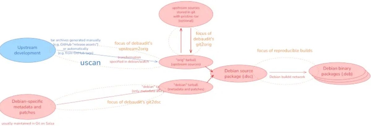 Проект Debian представил Debaudit — специализированный набор инструментов для контроля безопасности цепочки поставок. Его главная задача — гарантировать, что исходный код в репозиториях Debian в точности соответствует коду из официальных источников разработчиков (upstream). Система включает три ключевых компонента для поэтапной проверки: Такой аудит критически важен для воспроизводимых сборок, так как он исключает возможность внесения вредоносных изменений в процессе упаковки программ. Параллельно с развитием инструментов безопасности вышел релиз Debian 13.4. Дистрибутив базируется на ядре Linux 6.12.73 LTS и включает свежие версии графических окружений, таких как GNOME 48, KDE Plasma 6.3.6, Xfce 4.20 и Cinnamon 6.4.10. В этом обновлении разработчики устранили 111 ошибок и внедрили 67 патчей безопасности. Исправления затронули критически важные компоненты: glibc, Chromium, openssl, Samba и FFmpeg. Также до актуальных стабильных версий обновлены пакеты PostgreSQL, QEMU, Wireshark, Zabbi