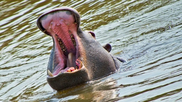 Вы видели, как бегемот широко зевает? В зоопарке это выглядит мило. Но этот зевок — не признак усталости. Это ультиматум. Когда бегемот раскрывает пасть на 150 градусов, он демонстрирует свое оружие. Нижние клыки могут достигать 50–60 сантиметров в длину! Это настоящие кинжалы. Растут они всю жизнь и самозатачиваются друг о друга. Одним таким укусом бегемот может перекусить небольшую лодку пополам или раздавить крокодила.