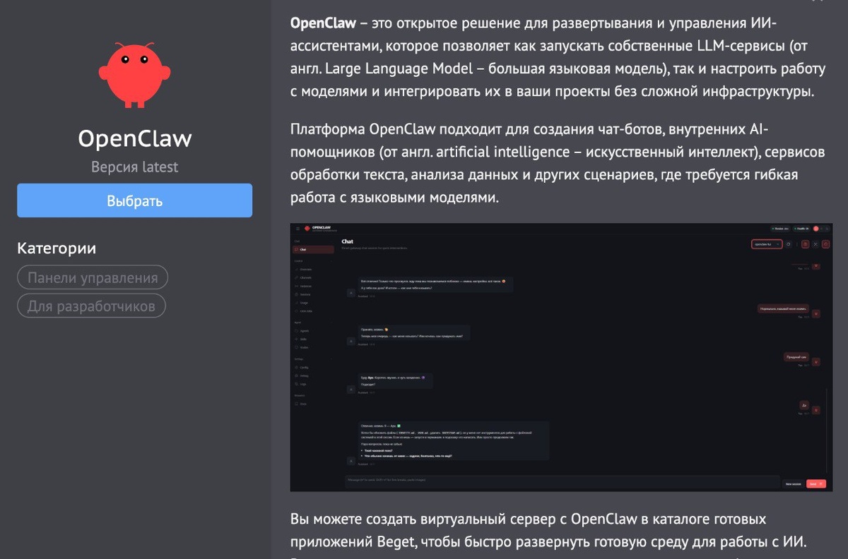 Когда компания слышит своих пользователей и вовремя подсуетилась, встречайте теперь можно агента развернуть одной кнопкой на любимом сервере OpenClaw от Beget – это готовая к работе сборка с вашим или бесплатным доменом и установленным SSL-сертификатом (от англ. Secure Sockets Layer – уровень защищенных сокетов), которая разворачивается за считанные минуты и сразу готова к интеграции в ваши проекты. #openclaw #автоматизация
