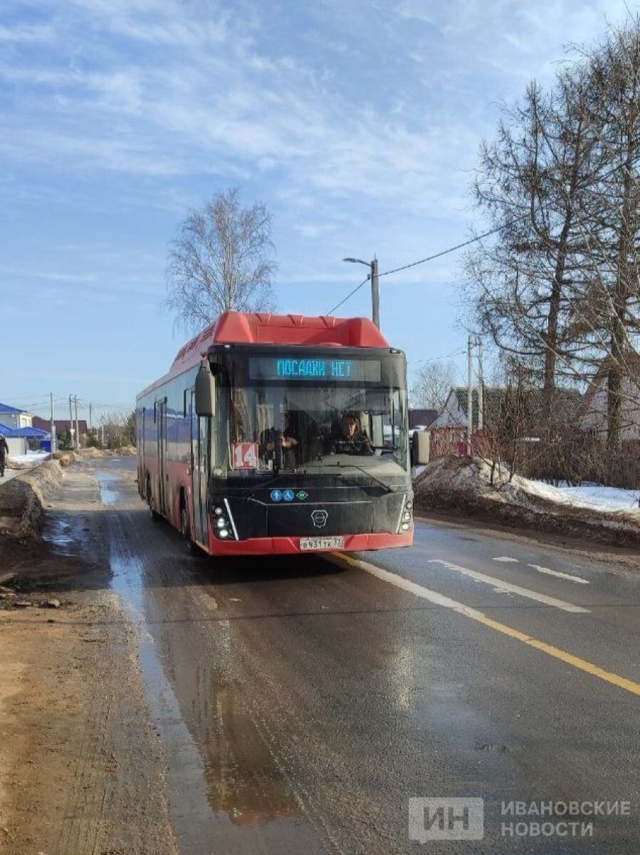 В Иванове автобус №14 проезжает мимо остановки с пассажирами