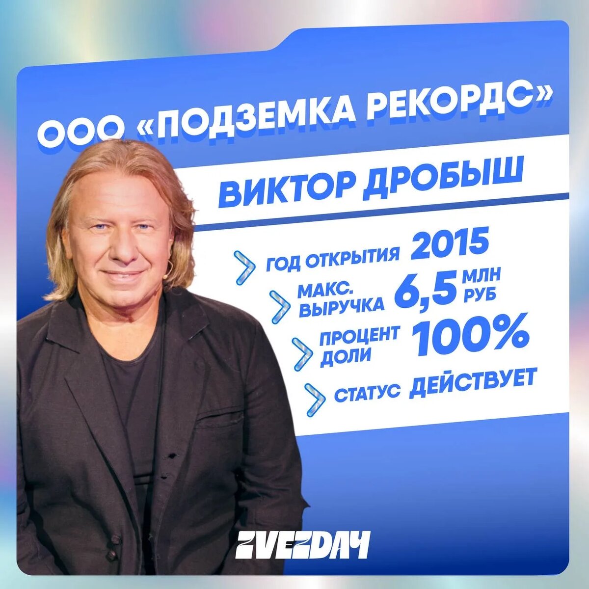 Компания появилась в 2015 году и занимается звукозаписью и изданием произведений. Руководит ей сам Виктор Яковлевич Дробыш, и он же единственный учредитель — 100% долей у продюсера. «Я из категории творца вынуждено переходил в категорию менеджера. Меня это часто пугает. Когда я чувствую, что начинается перевес менеджера, я сразу же все бросаю. Я забираю синтезатор и портостудию домой и начинаю перетягивать канат в сторону творца», — делился Дробыш в одном из интервью. Штат у бизнеса почти аскетичный: в последние годы в компании числился максимум один сотрудник, а в 2024-м — вообще ноль. При этом обороты все равно есть. Его ООО еще недавно сидело в минусе на 9,9 миллиона рублей, но за год компания резко вырулила: прибыль составила 6,5 миллиона рублей, а выручка выросла почти в десять раз — с 1,8 млн до 18 млн. Вообще для Дробыша это скорее вспомогательный проект, чем главный источник денег. Основная музыкальная машина продюсера — его продюсерский центр и ООО «Национальная музыкальная ко
